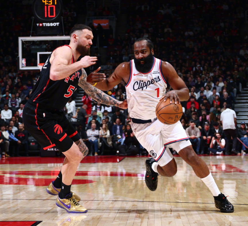 重返故地小卡缺阵!哈登31+10+加时独得8分,快船逆转猛龙5连胜